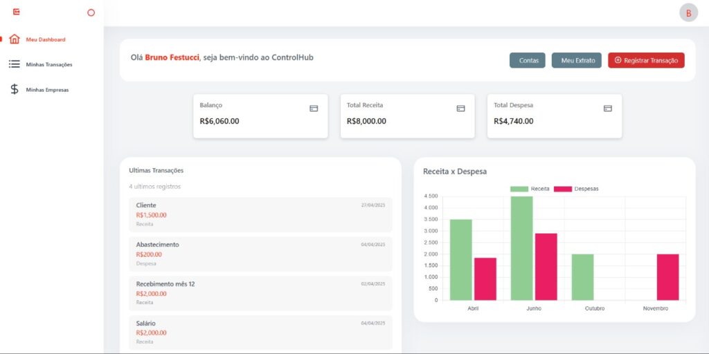 O ControlHub é um aplicativo de gestão financeira desenvolvido especialmente para microempreendedores individuais (MEIs), pequenos negócios e operadores de frete autônomos. Com ele, você controla receitas, despesas, fluxo de caixa e ainda tem acesso a relatórios e dashboards intuitivos para facilitar a tomada de decisão e impulsionar o crescimento do seu negócio.